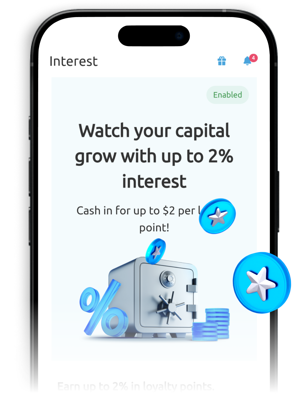 轻松实现被动收益,享受高达2%的利息回报,投资本金每日累积,会员积分按月发放。